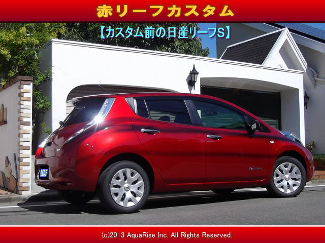 | 今回の日産リーフカスタムは、画像で紹介しているこの赤リーフSクラスを改造・カスタムします。 弊社アクアライズ株式会社代表・水上隼人が、経験と実績と英知をベースに、独自の発想力で、電気自動車・日産リーフを改造デザイン・製作して、コンプリートパフォーマンス! 2013年11月10日日曜日大安吉日に乞うご期待 <LeafAR-8810EV>号がデビュー♪! 因みに、この赤リーフカスタム前の日産リーフSクラス赤は、日産大阪販売株式会社岸和田南店で購入しました。 精一杯のお勉強をしてくれて、国からの補助金も出て、とってもお安く買えました! | ||||||||||||||||