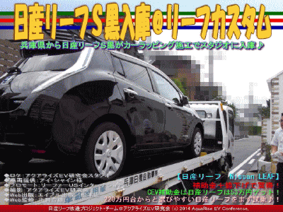 また、私たちアクアライズEV研究会=リーファー・ドット・ユーエスは、優れた日本のEV技術が投入された日産リーフに魅了されて、もっとこんな日産リーフがあれば面白いかも?というノリで、日産リーフカスタム改造コンプリートカーと言う形でリーフ改造・製作を実行♪ ご縁あって現在<ラプソディア>号、<ジオペット号>号や、<ハヤブサ隼HBR>号などを日産大阪販売株式会社や和歌山日産自動車株式会社の各店舗で展示しています。