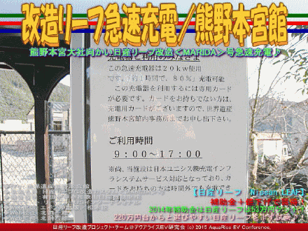 以下、改造リーフ急速充電/熊野本宮館の各画像はクリックで全て640x480pxlsに拡大します。 | ||||