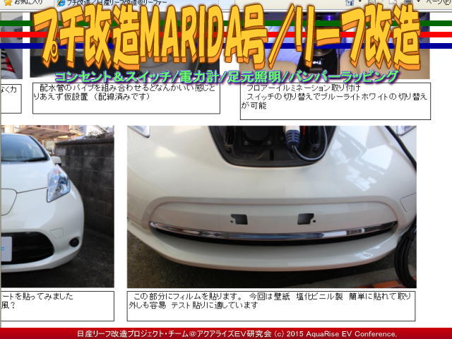 このアクアライズEV研究会のサイト検索は <日産リーフ改造>又は <リーフ改造>と入力してください。 『リーフカーラッピング』のYahoo!検索は、 ▼ここをクリック | ||||