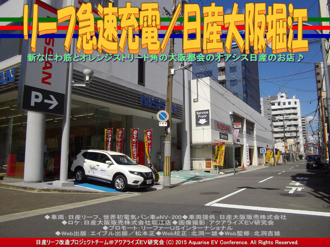 ◆車両:日産リーフ、世界初電気バン車eNV-200 ◆車両提供:日産大阪販売株式会社 ◆ロケ:日産大阪販売株式会社堀江店 ◆画像撮影:アクアライズEV研究会 ◆プロモート:リーファーUSインターナショナル ◆Web出版:エイブル出版/松本正 ◆Web校正:北洞一雄 ◆Web監修:北洞吉雄 | ||||
