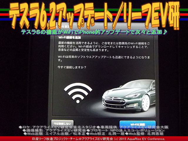 以上、テスラ6.2アップデート/リーフEV研の各画像は、クリックで全て640x480pxlsに拡大します。 ※本ページの表示画像5枚をスライドショー440x330pxlsで見られます。 ※上記で公表されている特定の氏名や団体名(ランドマークとなる施設や公共団体は除く)はご許可を申請または承認いただいて掲載しています。 ※本ブログは、私たち非営利団体である当アクアライズリーフEV研究会(別名:「リーフリーフEV研」や「リーフ改造リーフEV研」や「リーフEV研究会」)が中心となって作成。特定非営利活動促進法に基づき法人格を得た団体(特定非営利活動法人)として、<NPOエコ・レボリューション>の傘下で活動しています。 | ||||