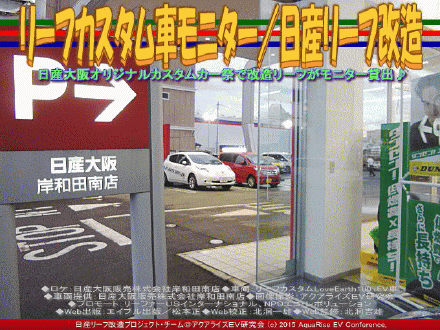※以下は『リーフカスタム無料貸出/日産岸和田南』をされたKさんからのインタビュー記事です。私Hiroが担当しています。 ---Kさんの発言: 最近街を走っていると、日産リーフをよく見かけるようになりました。 僕が乗っている車はプリウスの改造車です。 今回リーフの改造車、リーフカスタムカー<Love Earth 100% EV>仕様の試乗キャンペーンを知ってモニター試乗してみました。日産のお店で展示してあるカスタムカーですので、正規の違法でない法定遵守のカスタムカーだそうです。 試乗する前は、日産リーフはEV電気自動車なので走行距離は伸びないし、充電スポットは少ないし、おまけに車の値段が高いと思っていました! 【リーフカスタム車モニター/日産リーフ改造 01】 ---Kさんの発言: 日産のお店のCA(カーアドバイザー)さんから聞くと、日本の平均的なマイカーが走る距離が1年に1万kmから1万5000kmだそうです。例えば、多めの1万5000kmだとしても、いえ、計算が割り切れるように、もし1万5000km弱の14,600キロメートル走るとすると一日平均40キロメートルとなります。長距離ドライブが一般的といわれるアメリカ合衆国でも50キロメートル以下だと聞いたことがあります。※『カスタマイズLEAF/日産リーフ改造』『EVテスラ(4)/アクアライズEV研究会』参照。 【リーフカスタム車モニター/日産リーフ改造 02】 ---Kさんの発言: それにリーフに乗るまで気付かなかった充電スポットや充電スタンドはかなりあります。大阪はじめ兵庫も和歌山も充電スポットをリーフのEVナビ{充電スポット}で検索すると、日産のお店(『リーフ急速充電/日産大阪堀江』参照)をはじめイオン(『イオン近畿急速充電スポット/EV研』参照)などのスーパーやいろいろなところでそく見つかります。※『リーフ急速充電/西宮名塩SA』参照。 また、値段が高いというのも間違いでした。試乗の後見積りを出してもらった数字をみると、何と今僕が乗っているプリウスより安い。メンテナンス費用と燃料費を考えると、6年も乗れば軽く元が取れるかもしれません。一日平均約80キロ余り走る僕の場合では乗れば乗るほど日産リーフで経費が浮きます。浮いた経費は想像以上に多いという計算になります。※『日産リーフの五自慢@リーフカスタム』『リーファー@日産リーフ改造』を参照。 【リーフカスタム車モニター/日産リーフ改造 03】 ---Kさんの発言: なんとこんないい車なのに、今までなぜ日産リーフに目を向けなかったか?僕のリーフ否定論はどこからきたのだろう?・・・検証すると、2~3年ほど前になりますか?ネットでリーフをコテンパンに書いていた記事を読んだりしていました。それに「航続距離短い」「充電インフラが不十分だ」「価格がめちゃ高い」など数年前はあちこちで評論やブログで叩かれていました。そんなのをネットで目にしていたからだと思います。きっとそのせいでいつの間にか潜在意識に刷り込まれていたのでしょう。※『EVメーカーのSDとCSR(3)/EV研究会』参照。 【リーフカスタム車モニター/日産リーフ改造 04】 ---Kさんの発言: 現在僕は仕事と自家用にプリウスを2年10か月乗っています。プリウスは究極のエコカーだと思って乗っていましたが、日産リーフと比べると全くエコカーでないことが分かります。今では、プリウスを購入する前になぜ、この日産リーフを買わなかったのか後悔しています。現在乗っているプリウスは、買ってからすぐか少し前だったかも知れないが、プリウスPHV(プラグインハイブリッド)が発売されたという経緯(イキサツ)があります。で、僕のプリウスはもちろんプリウスPHV(プラグインハイブリッド)ではありませんし、燃費が良いといってもやはりガソリンを使っています。※『EVテスラとジェムニー/リーフ改造』『エコなスーパーカーの条件(2)@リーフ改造』参照。 【リーフカスタム車モニター/日産リーフ改造 05】 ---Kさんの発言: この『リーフ改造無料貸出/日産大阪岸和田南』でモニターをした機会に、僕のリーフネガティブ評価だった「短い航続距離」「充電インフラ不十分」「高い価格」は完全に吹き飛んでしまいました!・・・プリウス3年車検は査定価格が良いので、この際思い切って今度の車検で下取りしてもらって、必ず日産リーフGを購入します!・・・デス。 そして出足抜群!静か!エコ!ゼロエミッションカー!スポーツカーっぽく僕だけのワンオフ! カッコ良いリーフカスタムカーにしたいなと思います。 ※Kさま、カッコ良いリーフカスタムカーには幸田幸@映画の森てんこ森さんがお手伝いさせていただきます! 以上のテキストの主語「僕」はKさんです。今回『リーフカスタム無料貸出/日産岸和田南』をされたKさんから約1時間インタビュー、ヒアリングして、私Hiro@当アクアライズEV研究会が纏めてテキスト記事に起こしたものです。 また、当アクアライズEV研究会がブログ記事として取り上げた岸和田南店関連ページは、2014年4月以降では、このページを含んで、 『リーフカスタム車モニター/日
