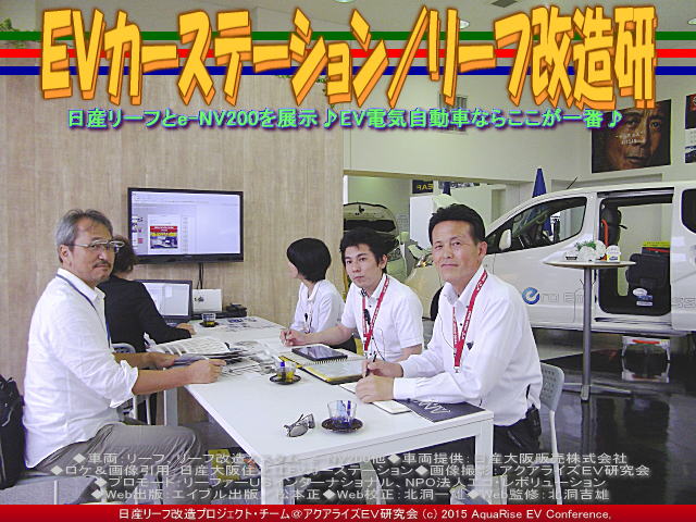 ◆車両:リーフ、リーフ改造カスタム、e-NV200他 ◆車両提供:日産大阪販売株式会社 ◆ロケ&画像引用:日産大阪住之江EVカーステーション ◆画像撮影:アクアライズEV研究会 ◆プロモート:リーファーUSインターナショナル、NPO法人エコ・レボリューション ◆Web出版:エイブル出版/松本正 ◆Web校正:北洞一雄 | ||||