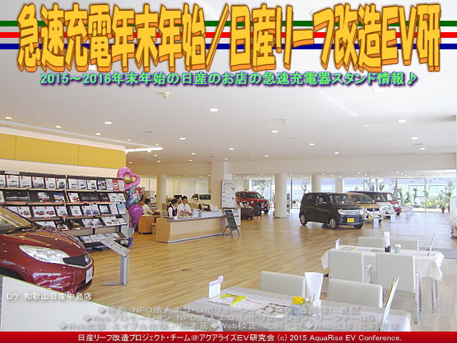※本ブログは、私たちボランティア団体である当アクアライズEV研究会(別名:「リーフEV研」や「リーフ改造研」や「リーフ改造EV研」や「EV研究会」や「EV研」や「AREV神戸」)が中心となって作成。特定非営利活動促進法に基づき法人格を得た団体(特定非営利活動法人)NPO法人エコ・レボリューション(NPO法人エコ・レボリューションCOMまたはNPO法人エコ・レボリューションNET、そしてNPO法人エコ・レボリューションINFO)の傘下で活動しています。 ※以下で紹介する画像は、NPO法人エコ・レボリューションとアクアライズEV研究会が撮影した画像以外は、各関係団体の使用許諾または使用ルールにしたがって使用しています。 【急速充電年末年始(3)/日産リーフ改造EV研 01】 日産の年末年始の急速充電スポット情報 日産販売会社、日産自動車および日産レンタカーの各事業所に設置されている充電スタンド(急速充電)の年末年始休暇期間中の稼働状況が以下の公式ページで確認できます。 ★日産=年末年始休暇期間中の日産 充電スタンド(急速充電)の稼働状況についてのご案内 ★北海道・東北の急速充電スポット ★甲信越・北陸の急速充電スポット ★関東の急速充電スポット ★東海の急速充電スポット ★関西の急速充電スポット ★中国・四国の急速充電スポット ★九州・沖縄の急速充電スポット また、年末年始休暇期間中の販売店営業日の案内は以下の公式ページで確認できます。 ★年末年始の日産販売店の営業日 ★電気自動車用充電スタンド検索 急速充電マップ 日産充電スタンド検索 【急速充電年末年始(3)/日産リーフ改造EV研 02】 ■和歌山日産自動車株式会社 ◎印は毎日24時間稼働中 あ□有田店 0737-52-3266 ◎ い□岩出店 0736-63-2300 ◎ お□大浦店 073-428-3311 ◎ き□紀北店 0736-42-3222 稼働休止日(12/28~12/31) き□狐島店 073-454-2523 ◎ し□新宮店 0735-22-6245 ◎ た□田辺店 0739-22-5217 ◎ な□中島店 073-423-2223 ◎ 以上、和歌山日産(正式名:和歌山日産自動車株式会社)のお店の急速充電スタンド設置店8店舗でした。 【急速充電年末年始(3)/日産リーフ改造EV研 03】 ◎印は毎日24時間稼働中 こ□御坊店 0738-68-1123 ◎ し□新宮店 0735-22-5196 ◎ た□田辺支店 0739-22-8132 ◎ た□田辺南店 0739-47-0017 ◎ ま□松島支店 073-473-4141 ◎ わ□和歌浦マイカーセンター 073-445-8668 ◎ 以上、日産プリンス和歌山(正式名:日産プリンス和歌山販売株式会社)のお店の急速充電スタンド設置店6店舗でした。 【急速充電年末年始(3)/日産リーフ改造EV研 04】 ちなみに、私のような、お仕事と休暇でわが愛車ドレスアップ日産リーフ改造カスタムカー「ラプソディア号」に乗って一日平均100キロ以上月3千キロ以上は走る、いわゆるヘビーリーファーにとって、出先の急速充電スポットはとても役立っています。日産大阪のお店(『リーフ急速充電/日産大阪住之江』『リーフ急速充電/日産大阪堀江』『黄リーフ充電日産高石店/リーフ改造』等)や、和歌山日産のお店(『リニューアルオープン/和歌山日産中島店』『リーフ急速充電/和歌山日産大浦@リーフカスタム』等)や、兵庫日産のお店(『リーフ急速充電/兵庫日産三木店』『リーフ急速充電/兵庫日産三木東店』『リーフ急速充電/兵庫日産高砂中島店』『リーフ急速充電/兵庫日産高砂竜山店』等)では、日産ゼロエミッションZESPスタンダード・カード会員に入っていると、面倒な認証手続きをすることなく手軽に急速充電できます。日産さんと日産自動車販売店さん、急速充電インフラ整備にご尽力下さって、本当にありがとうございます。 ※日産自動車公式ページより引用して一部編集。2015年12月25日調べ。データが更新されている場合や入力ミスがあるかもしれません。年末年始に各お店の急速充電器の利用の場合は前もってお確かめくださいませ。 | ||||