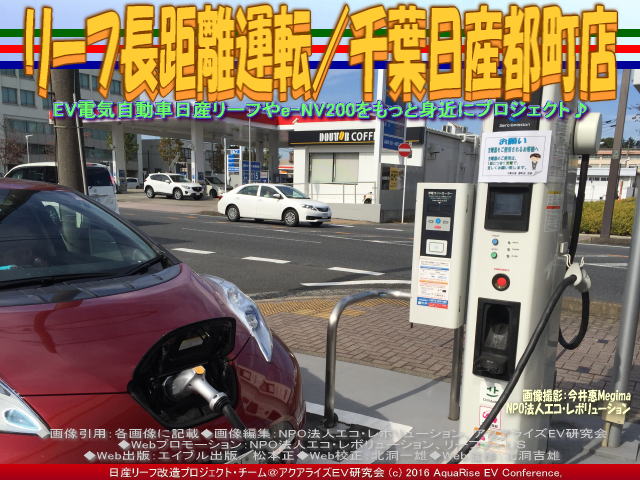 今回は日産リーフで長距離運転「千葉日産都町店」です。 千葉日産都町店は、正式名称は千葉日産自動車株式会社都町店。公式ページを拝見すると、<都町店です!当店は、明るく元気なスタッフが揃っております。お車の整備に関しても、熱心なスタッフが、真心を込めて行っています。是非、お車の事は都町店にお任せください。スタッフ一同、心よりお客様のご来店をお待ちしております。>とあります。 【リーフ長距離運転/千葉日産都町店 01】  リーフ長距離運転/千葉日産都町店画像01 EV電気自動車日産リーフやe-NV200をもっと身近にプロジェクト♪