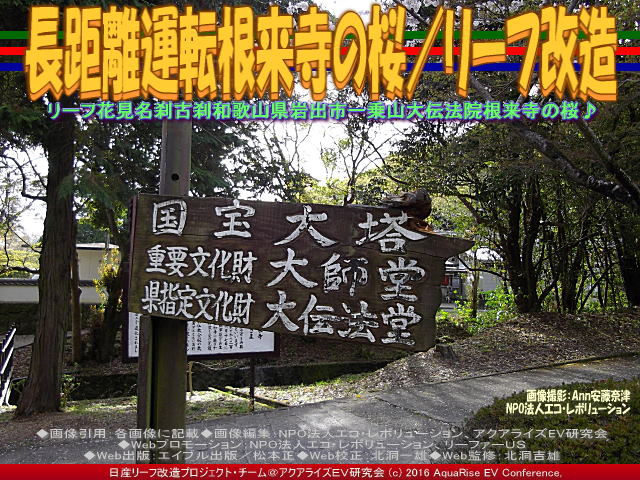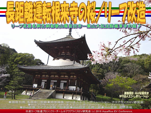 今回の紹介ブログは、『長距離運転根来寺の桜(2)/リーフ改造』です。 前回(昨日)のブログ『長距離運転根来寺の桜/リーフ改造』の続編です。 画像タイトルは「長距離運転根来寺の桜/リーフ改造」で統一して、3作シリーズ・トリオロジーでお届けしています。 ※本ブログは、私たちボランティア団体である当アクアライズEV研究会(別名:「EVリーフ改造」や「リーフEV研」や「リーフ改造研」や「リーフ改造EV研」や「EV研究会」や「EV研」や「AREV神戸」)が中心となって作成。特定非営利活動促進法に基づき法人格を得た団体(特定非営利活動法人)NPO法人エコ・レボリューション(NPO法人エコ・レボリューションCOMまたはNPO法人エコ・レボリューションNET、そしてNPO法人エコ・レボリューションINFO)の傘下で活動しています。