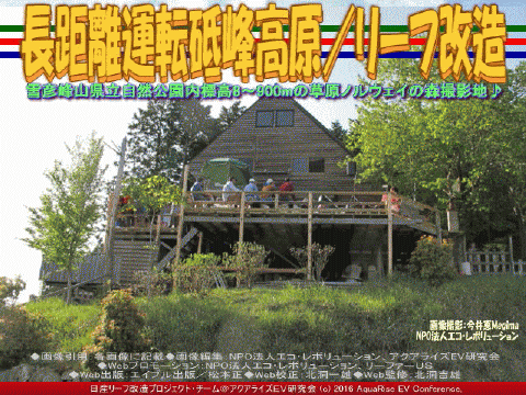 今回の紹介ブログは、『長距離運転砥峰高原/リーフ改造』です。 ※本ブログは、私たちボランティア団体である当アクアライズEV研究会(別名:「EVリーフ改造」や「リーフEV研」や「リーフ改造研」や「リーフ改造EV研」や「EV研究会」や「EV研」や「AREV神戸」)が中心となって作成。特定非営利活動促進法に基づき法人格を得た団体(特定非営利活動法人)NPO法人エコ・レボリューション(NPO法人エコ・レボリューションCOMまたはNPO法人エコ・レボリューションNET、そしてNPO法人エコ・レボリューションINFO)の傘下で活動しています。 ※NPO法人エコ・レボリューションは、今乗っているガソリン車をEV電気自動車に乗り換えて、規制対象の排出ガス汚染物質の削減=ゼロエミッション活動を通じて「ストップ・ザ・地球温暖化」に地域レベルで貢献することを旨として、現在「乗換えにはEV、今こそ決断♪」を推進しています。