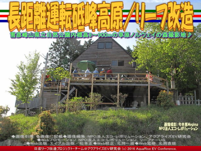 今回の話題は「砥峰高原」です。愛車ドレスアップ日産リーフ改造カスタムカー「ラプソディア号」に乗って、先月2016年5月15日(日)~2016年5月16日(月)に開催された「第31回雲の上の音楽会in悠友山荘」へのリーフ長距離運転の途中に立ち寄りました。ちなみに、「雲の上の音楽会in悠友山荘」は原則として毎年2回5月と11月に開催されています。「雲の上の音楽会」は改めてブログページを設けますが、私Megimaは今年も参加しました。今日のブログ「砥峰高原」からさらに10キロほど車で山道を上って行くと、段が峰の登山口(千町峠=悠友山荘)にある立派な個人の山荘が、その雲の上の音楽会が開かれる「悠友山荘」です。 【長距離運転砥峰高原/リーフ改造 01】  長距離運転砥峰高原/リーフ改造画像01 雪彦峰山県立自然公園内標高8~900mの草原ノルウェイの森撮影地