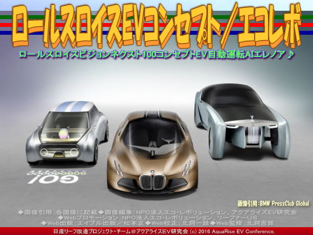 ・・・前回『ロールスロイスEVコンセプト/エコレボ』のブログの続きは以下です。 【ロールスロイスEVコンセプト(2)/エコレボ 01】 【ロールスロイスEVコンセプト(2)/エコレボ 02】 【ロールスロイスEVコンセプト(2)/エコレボ 03】 into the future of luxury』(1:56)youTube動画を見ると、CMプロモーションの域を超えた上質の映像に映し出される、独特なフォルムとゴージャスさで人目を惹きつけます。紹介されているロールス・ロイスという100年先の未来のクルマは当然のことながら、登場する女優と男優もカッコいいです。タイトルから察すると、100年後のロールスロイスの豪華さラグジュアリーへの旅はこのロールスロイスを見てほしいということなのでしょう(※参照:Rolls-Royce 103EX)。・・・つづく ちなみに、当NPOエコレボリューション(<エコレボNET><エコ・レボCOM><エコレボINFO>)は、「BMW Vision Next 100 Concept(BMWビジョンネクスト100コンセプト)」やBMWi3についてはレンジエクステンダー車でなくて、100%バッテリー仕様のBEV電気自動車「BMWi3EV」関連のブログを以下のようにアップしています。※「BMWグループが創立100周年を迎える」のBMW公式PDF案内書、又は当ブログ編集のJPG文書参照。 160724『BMWビジョンネクスト100(5)/NPOエコレボ』 160723『BMWビジョンネクスト100(4)/NPOエコレボ』 160722『BMWビジョンネクスト100(3)/NPOエコレボ』 160721『BMWビジョンネクスト100(2)/NPOエコレボ』 160720『BMWビジョンネクスト100/NPOエコレボ』 151216『BMWi3(5)/大阪モーターショー2015』 151215『BMWi3(4)/大阪モーターショー2015』 151214『BMWi3(3)/大阪モーターショー2015』 151213『BMWi3(2)/大阪モーターショー2015』 151212『BMWi3/大阪モーターショー2015』 150714『EVメーカーのSDとCSR(3)EV研究会』 150713『EVメーカーのSDとCSR(2)/EV研究会』 150712『EVメーカーのSDとCSR/EV研究会』 150710『EVメーカーのCSR(3)/リーフEV研』 150709『EVメーカーのCSR(2)/リーフEV研』 150708『EVメーカーのCSR/リーフEV研』 150707『EVメーカーの急速充電(3)/リーフEV研』 150706『EVメーカーの急速充電(2)/リーフEV研』 150705『EVメーカーの急速充電/リーフEV研』 150704『BMWi3EV型のスペック/エルベオート』 150703『BMW電気自動車i3(6)/リーフEV研』 150702『BMW電気自動車i3(5)/リーフEV研』 150701『BMW電気自動車i3(4)/リーフEV研』 150606『EV電気自動車のASV(3)/リーフEV研』 150605『EV電気自動車のASV(2)/リーフEV研』 150604『EV電気自動車のASV/リーフEV研』 150603『EV電気自動車のQS(3)/リーフEV研』 150602『EV電気自動車のQS(2)/リーフEV研』 150601『EV電気自動車のQS/リーフEV研』 150530『BMW電気自動車i3(3)/リーフEV研』 150529『BMW電気自動車i3(2)/リーフEV研』 150528『BMW電気自動車i3/リーフEV研』 あわせてご覧いただければ幸いです。 |