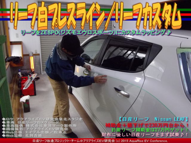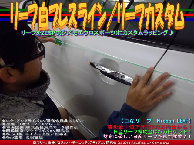 ◆ロケ:アクアライズEV研究会泉北スタジオ ◆車両:日産リーフ白Xグレード ◆車両提供:株式会社東洋マーク製作所 ◆ラッピング施工:ジェイトリム大阪 ◆施工管理:(株)東洋マークEV事業部 ◆画像撮影:アクアライズEV研究会 ◆プロモート:リーファーUSインターナショナル ◆Web出版:エイブル出版/松本正 ◆Web校正:北洞一雄 ◆Web監修:北洞吉雄 | ||||