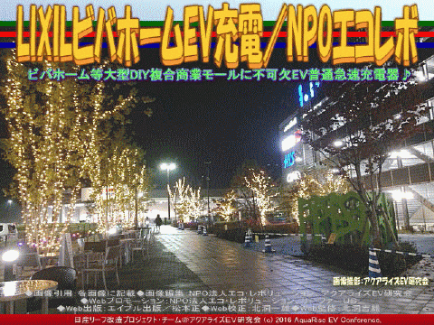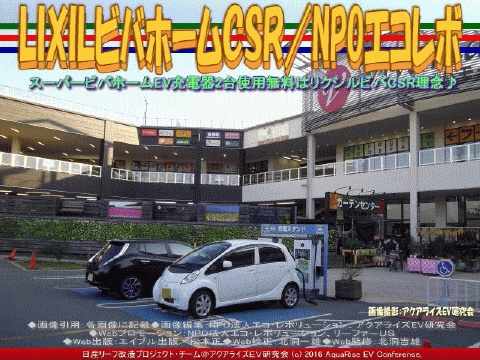 以上、LIXILビバホームEV充電/NPOエコレボの各画像はクリックで全て640x480pxlsに拡大します。 ※本ブログページのすべての画像3枚をスライドショー480x360pxlsで見られます。 |