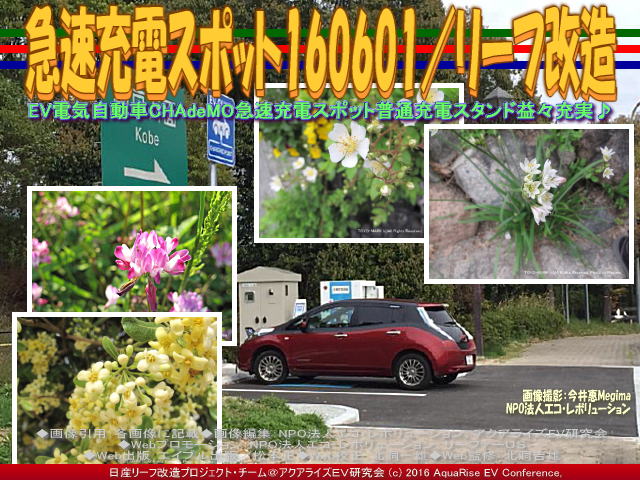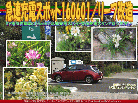 以上、急速充電スポット160601/リーフ改造の各画像はクリックで全て640x480pxlsに拡大します。 ※本ブログページのすべての画像2枚をスライドショー480x360pxlsで見られます。 ※ブログ『急速充電スポット160501/リーフ改造』の画像を480x360ピクセルのアニメーション画像で見られます。 ※ブログ『急速充電スポット160501/リーフ改造』の画像を320x240ピクセルのアニメーション画像で見られます。 | ||||