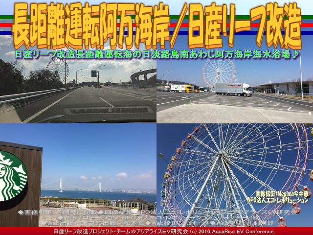 以上、長距離運転阿万海岸/リーフ改造の各画像はクリックで全て640x480pxlsに拡大します。 ※本ブログページのすべての画像3枚をスライドショー480x360pxlsで見られます。 |