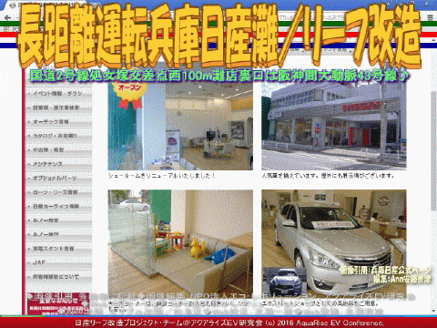 このアクアライズEV研究会のサイト検索は <日産リーフ改造>又は <リーフ改造>と入力してください。 『リーフカーラッピング』のYahoo!検索は、 ▼ここをクリック | ||||