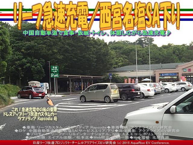 以上、リーフ急速充電/西宮名塩SAの各画像はクリックで全て640x480pxlsに拡大します。 ※本ページの表示画像3枚をスライドショー440x330pxlsで見られます。 | ||||