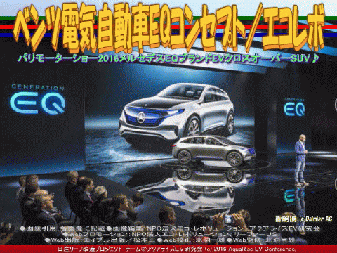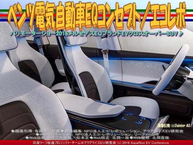 以上、ベンツ電気自動車EQ(6)/エコレボの各画像はクリックで全て640x480pxlsに拡大します。 ※本ブログページのすべての画像3枚をスライドショー480x360pxlsで見られます。 |